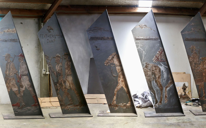 The Sculpture stands as a striking reminder of the town’s military and cultural history. Located across Fitzherbert St from the museum, the sculpture was designed by New Zealand artist Paul Dibble and unveiled in 2015. It commemorates the World War I training camp that once stood on the site, and the tragic events of 1943.